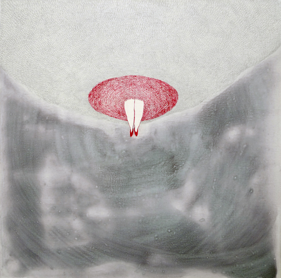 Ink,acrylic,pencil on canvas, 10x 10 inches, 2009