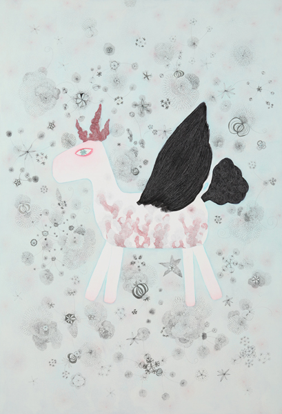 pen,pencil, colored pencil,ink &gouache on canvas,