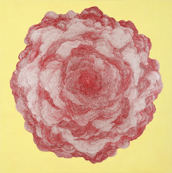Blooming, Ink, acrylic & gouache on canvas, 30 x 30 inches (76 x 76 cm), 2009